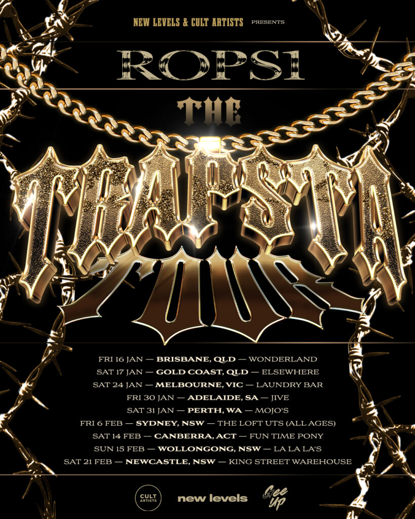 Rops1 is hitting the road for his first ever headline run, taking TRAPSTA Australia-wide. Off the back of his breakthrough single, these shows strip it down to what matters: hard bars, heavy beats, and the energy that built his name from the ground up.